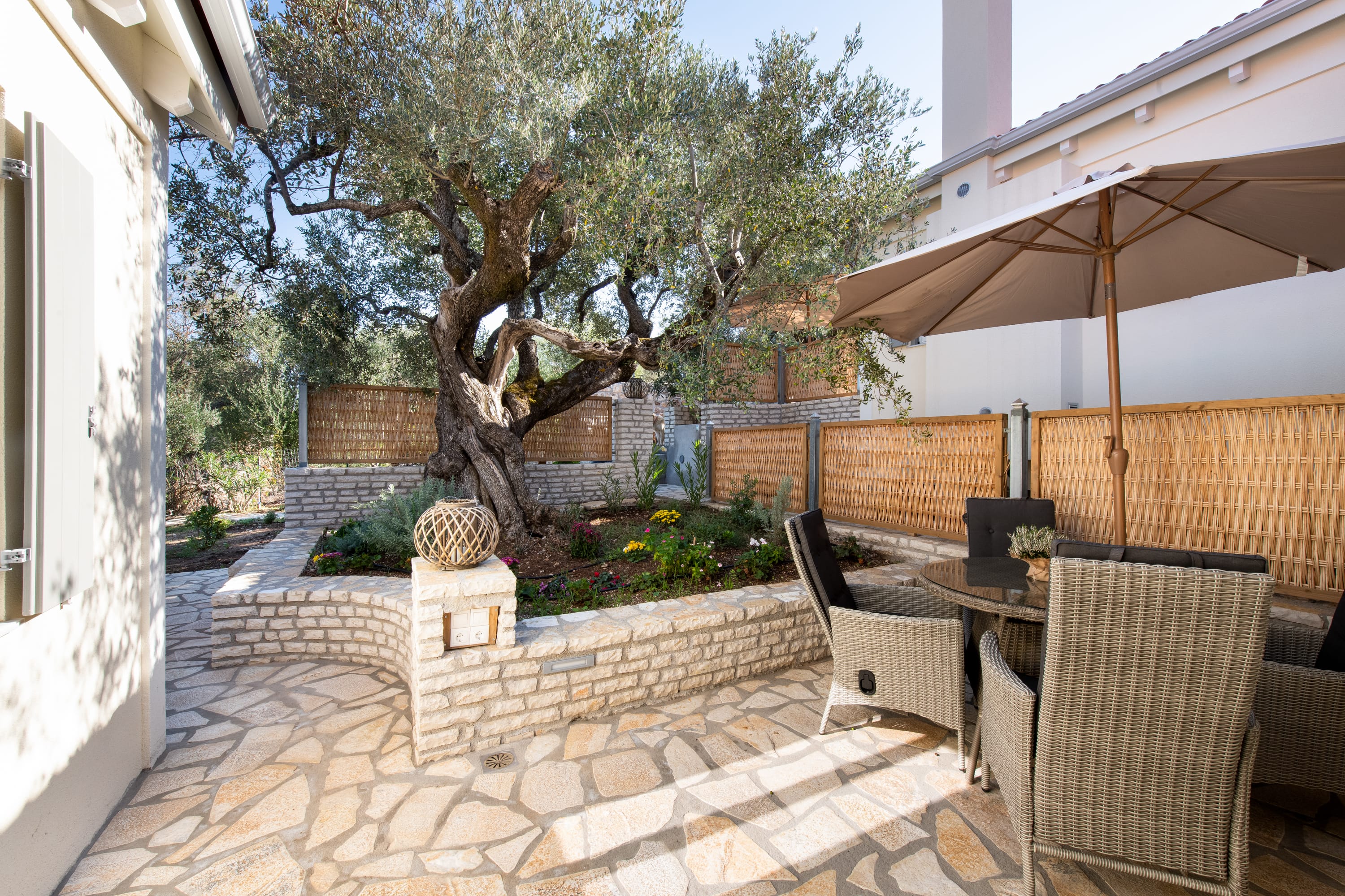 Οι εσωτερικοί χώροι της νεόδμητης κατοικίας AZURE SUITE περιλαμβάνουν ένα υπνοδωμάτιο με υπέρδιπλο κρεβάτι, ένα ευρύχωρο ανοιχτό καθιστικό με καναπέ που μετατρέπεται σε 1 διπλό ή 2 μονά κρεβάτια, μπάνιο με ντουζιέρα, τραπεζαρία 6 ατόμων και πλήρως εξοπλισμένη κουζίνα. Η ιδιωτική της αυλή, που αγκαλιάζεται από μια από τις αιωνόβιες ελιές του κτήματος Olivea, διαθέτει τραπεζαρία κήπου 4 ατόμων, εξωτικό daybed και εξωτερική ντουζιέρα με ζεστό νερό.